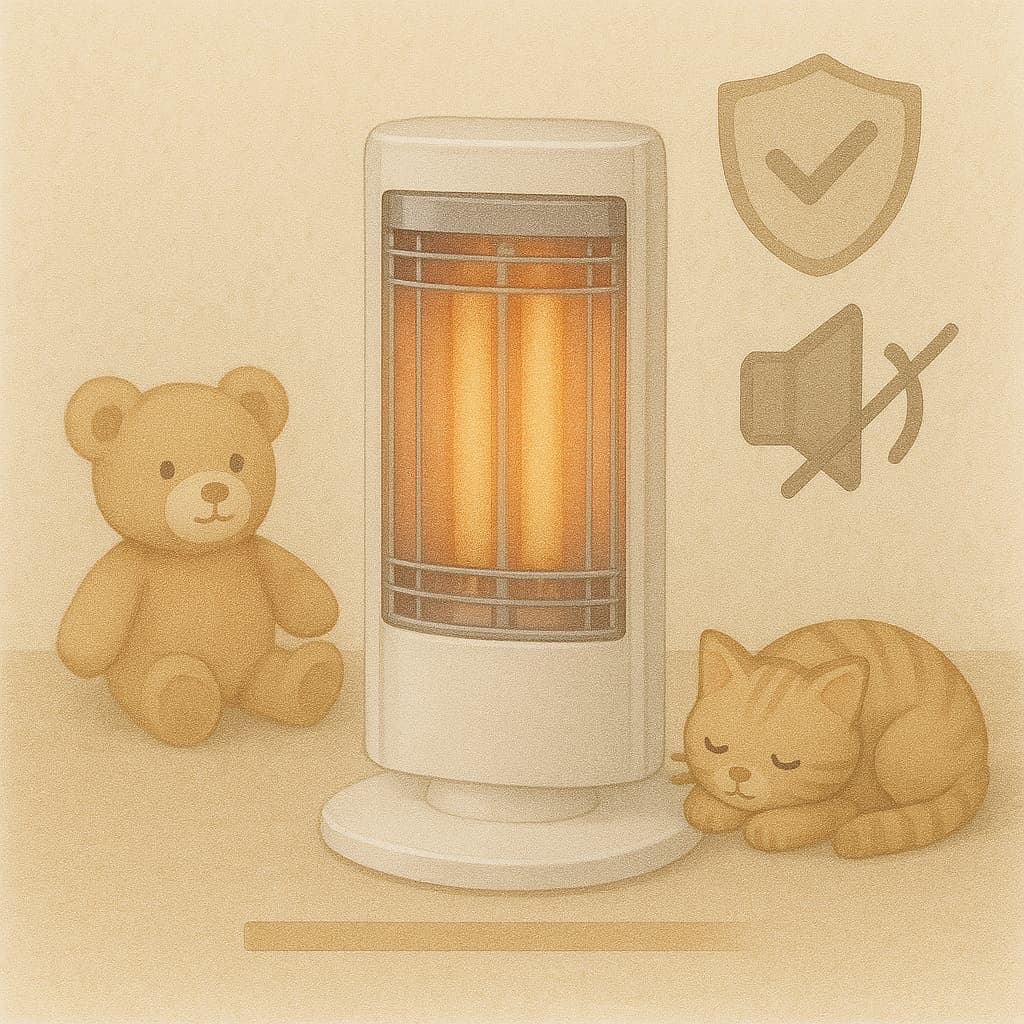 転倒時に電源が自動で切れる「転倒OFF機能」や、温度の上がりすぎを防ぐ安全装置など、安心して使える工夫がしっかり備わっています。