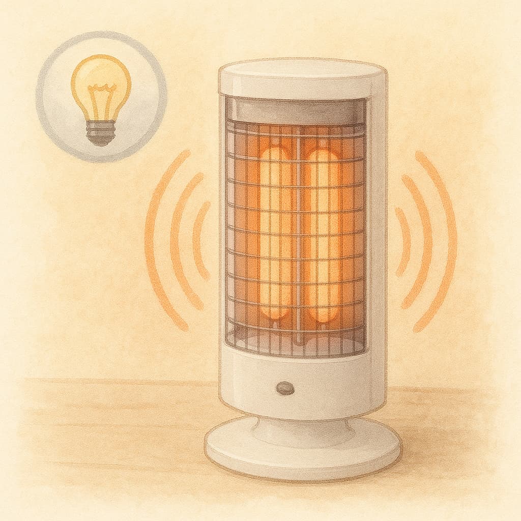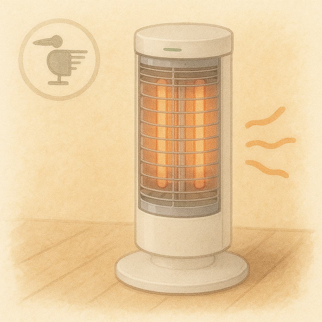 ハロゲンヒーターは立ち上がりがやや遅く、熱が広がりにくい傾向があります。