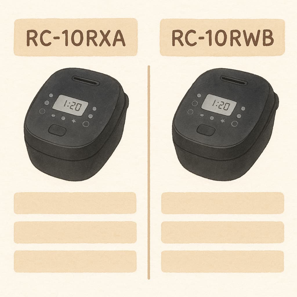 RC-10RXAとRC-10RWBはどちらも東芝の真空IHシリーズに属しますが、細かな仕様の違いによって炊き上がりの傾向や使い勝手に差が生まれます。