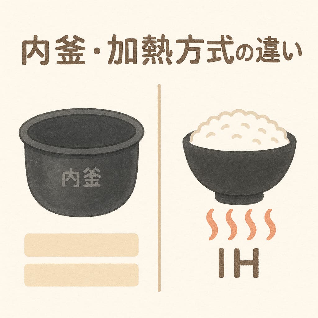 炊飯器の味を左右する最大の要素が「内釜」と「加熱方式」です。