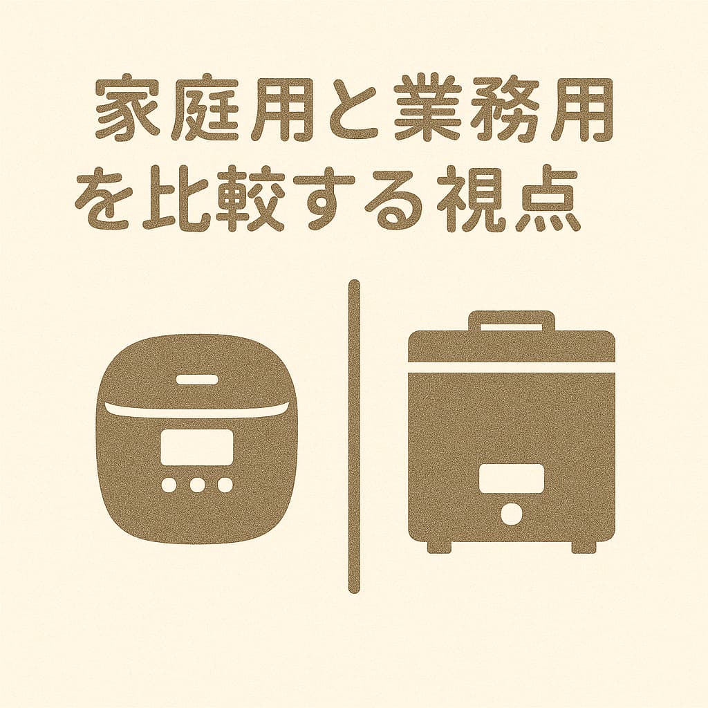 しかし、家庭用炊飯器と業務用炊飯器には求められる耐久性や連続稼働性能が大きく異なるため、単純なスペック比較だけでは判断できません。