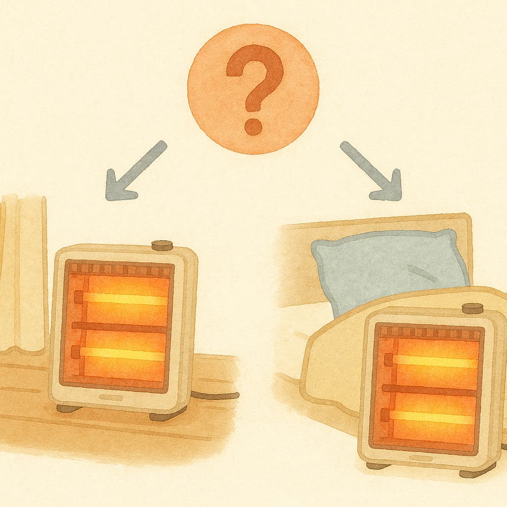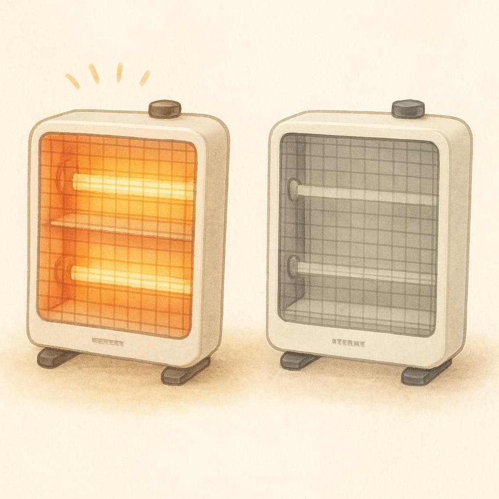 両モデルに共通するデメリットとして、石英管ヒーター特有の光の照射がまぶしく感じられる場合がある点が挙げられます。
