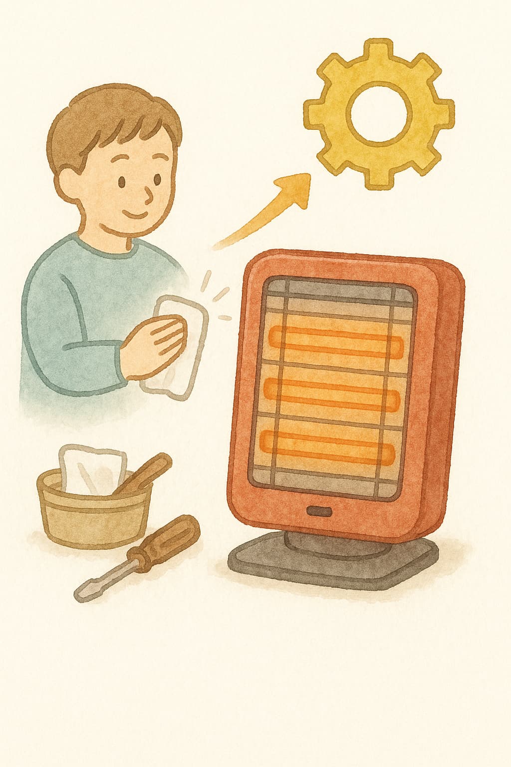特に石英管ヒーターはホコリがたまりやすいため、定期的な清掃が必要です。