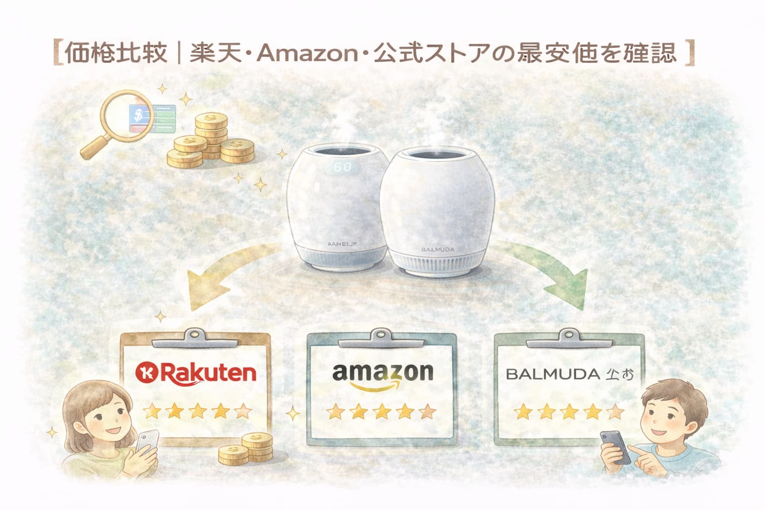 加湿器の購入を検討する際、同じモデルでも 購入する店舗によって価格や特典、保証が変わる ことがあります。