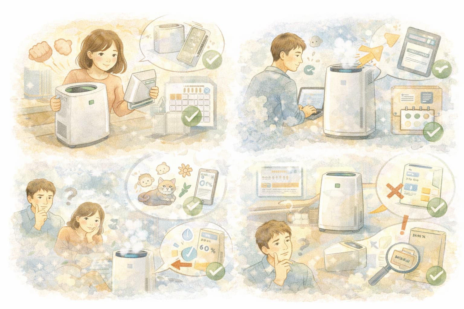 KC・KIを比較するとき、つい「シリーズ名」や「プラズマクラスターの数値」だけに目が行きがちですが、実際の満足度を左右するのは、加湿がどれだけ続くか、空気清浄がどれだけ早く回るか、そして維持コストと手間がどの程度かの3点です。