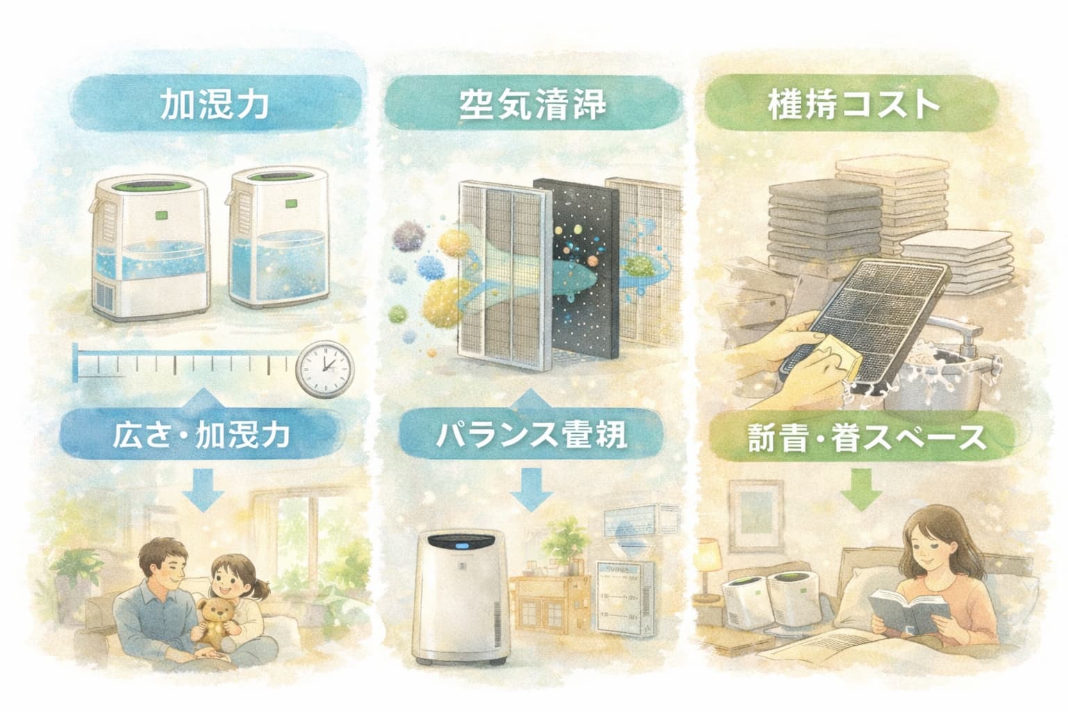 性能で比較|加湿・清浄・維持コストの現実