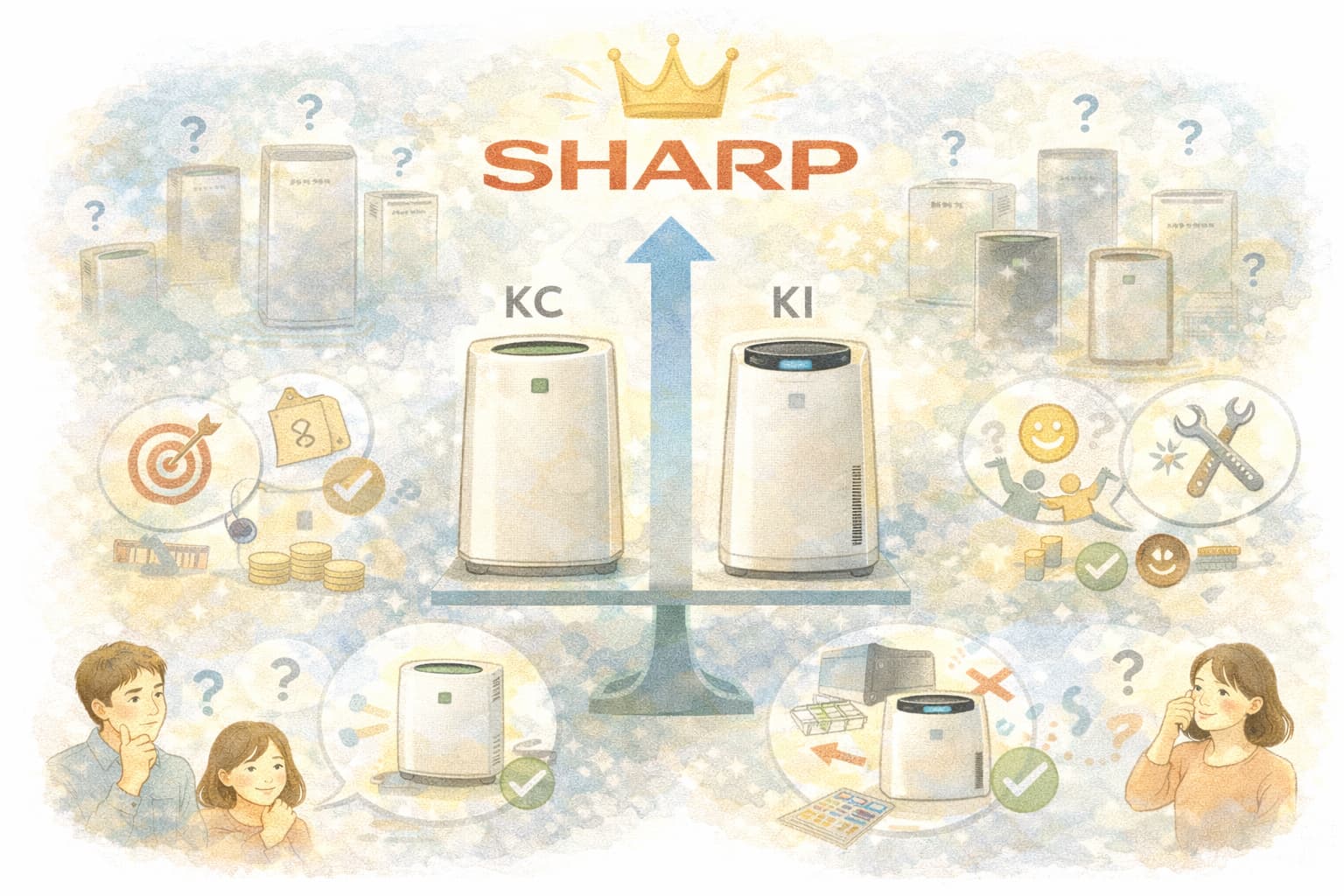 シャープの加湿空気清浄機を検討する際、多くの人が迷うのが「KCとKIのどちらを選ぶべきか」という点です。