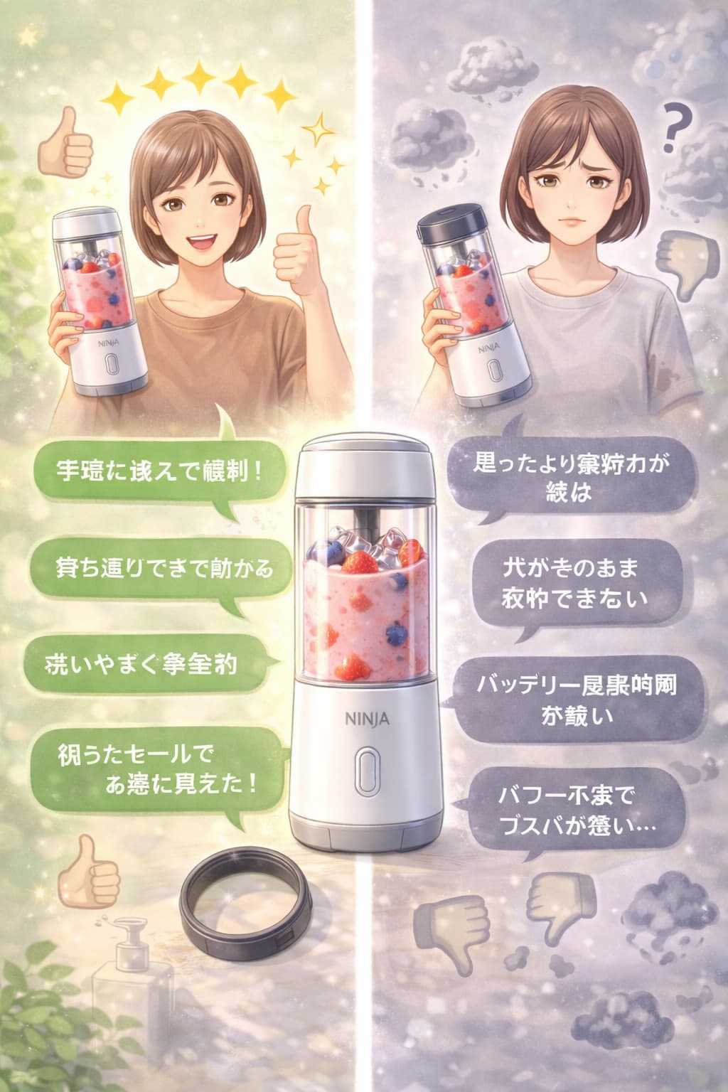 ニンジャブラスト BC151Jを選ぶ理由は、「コードレスで手軽」「持ち運びできる」「ドリンク用途に特化している」という点に価値を感じられるかどうかに集約されます。