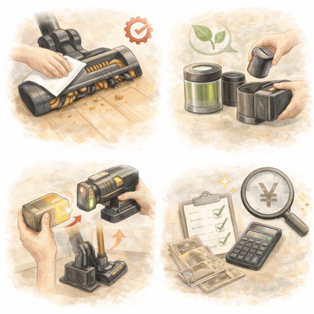 コードレス掃除機は初期価格だけでなく、使い続ける中でどれくらい手間や費用がかかるかも重要な判断材料です。