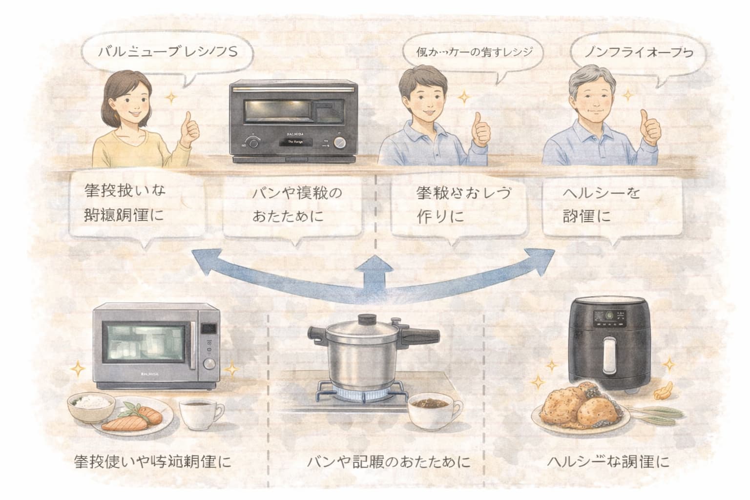 レンジSやThe Rangeを検討する際、「他の家電とどう使い分けるか」を整理しておくと、購入後の満足度が大きく変わります。