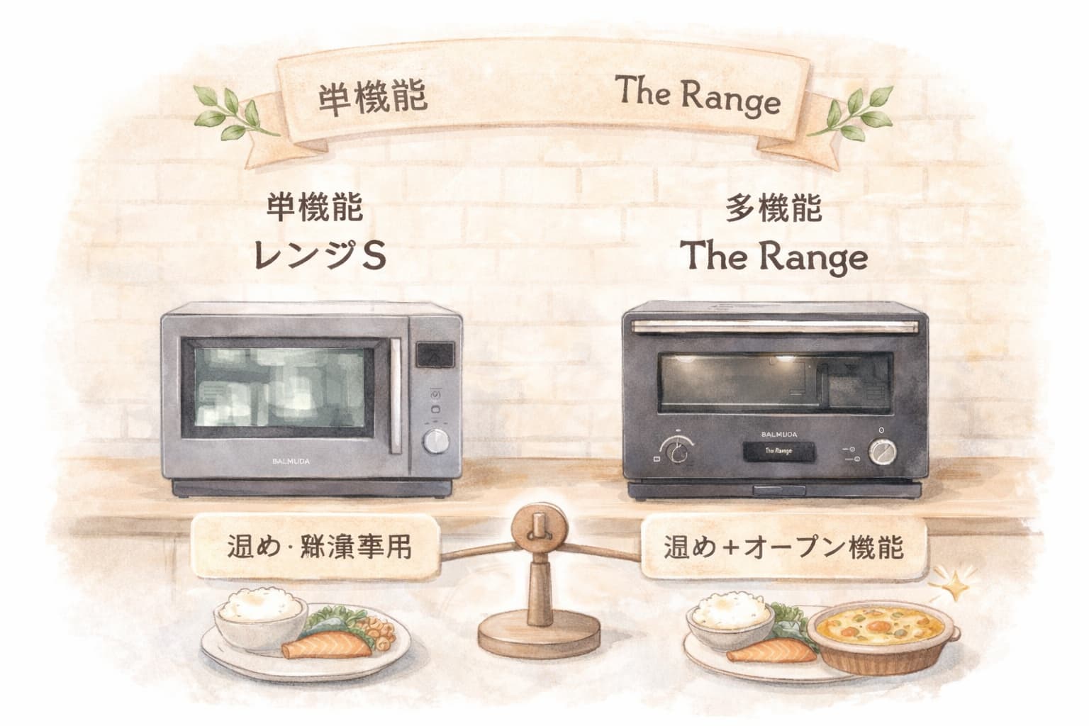 コンセプトの違い:レンジSは単機能、The Rangeはオーブンレンジ