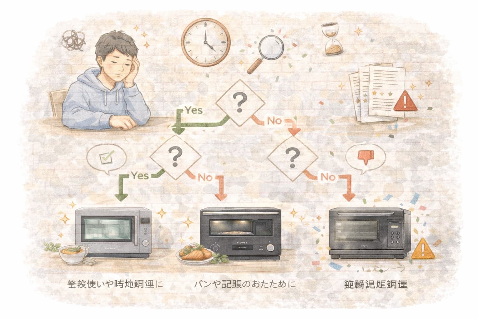 また、どちらも電子レンジとして使えるため、用途が重なって見える点も迷いやすさの原因です。