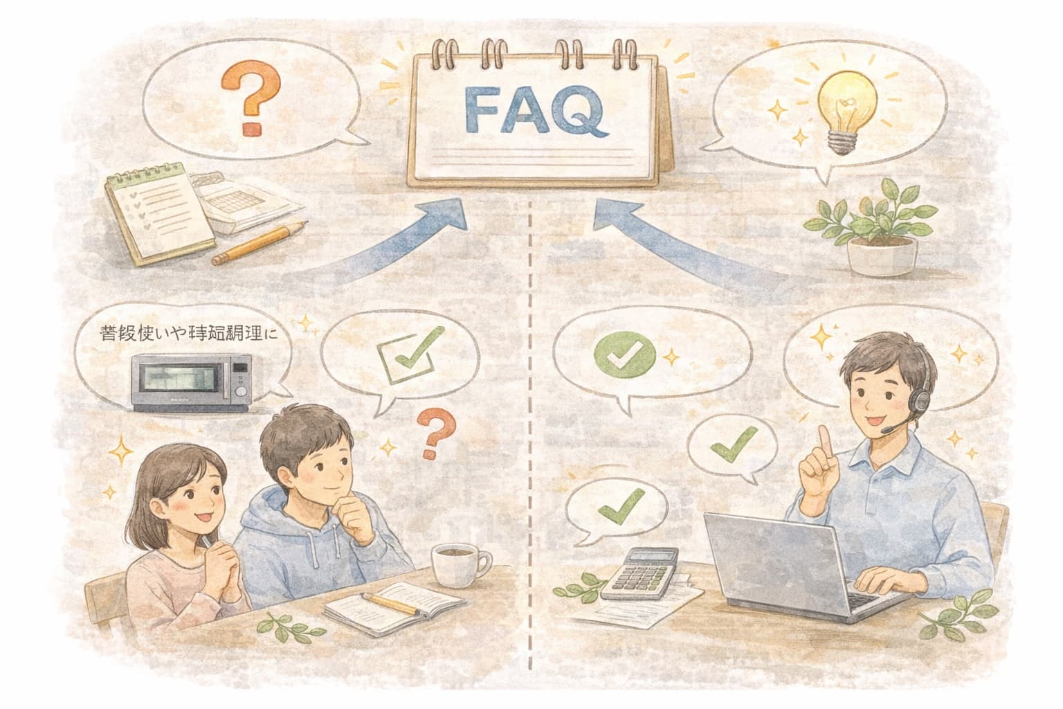 設置スペース、庫内サイズ、家族構成、料理頻度などを事前に整理しておくことで、こうした失敗は防ぎやすくなります。