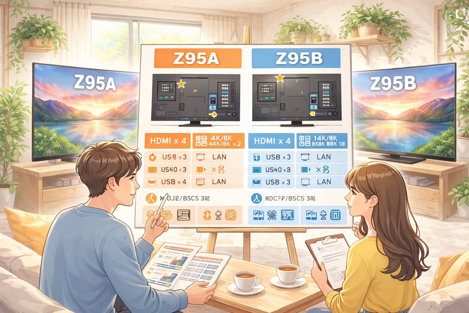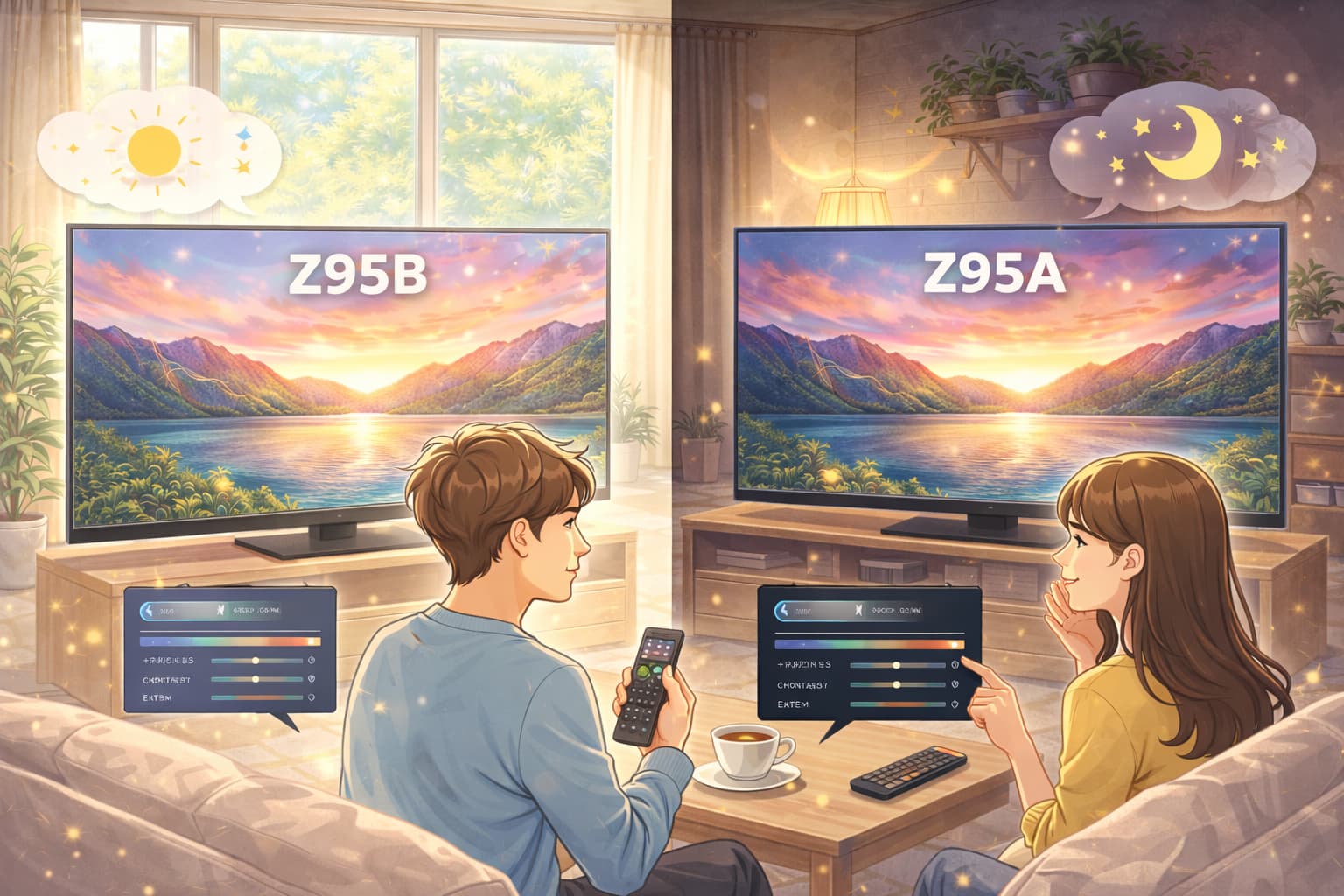 • 画質:Z95Bは世代更新による画作りの刷新がポイント。Z95Aも最上位クラスで十分高画質だが、価格とのバランスで選ばれやすい。