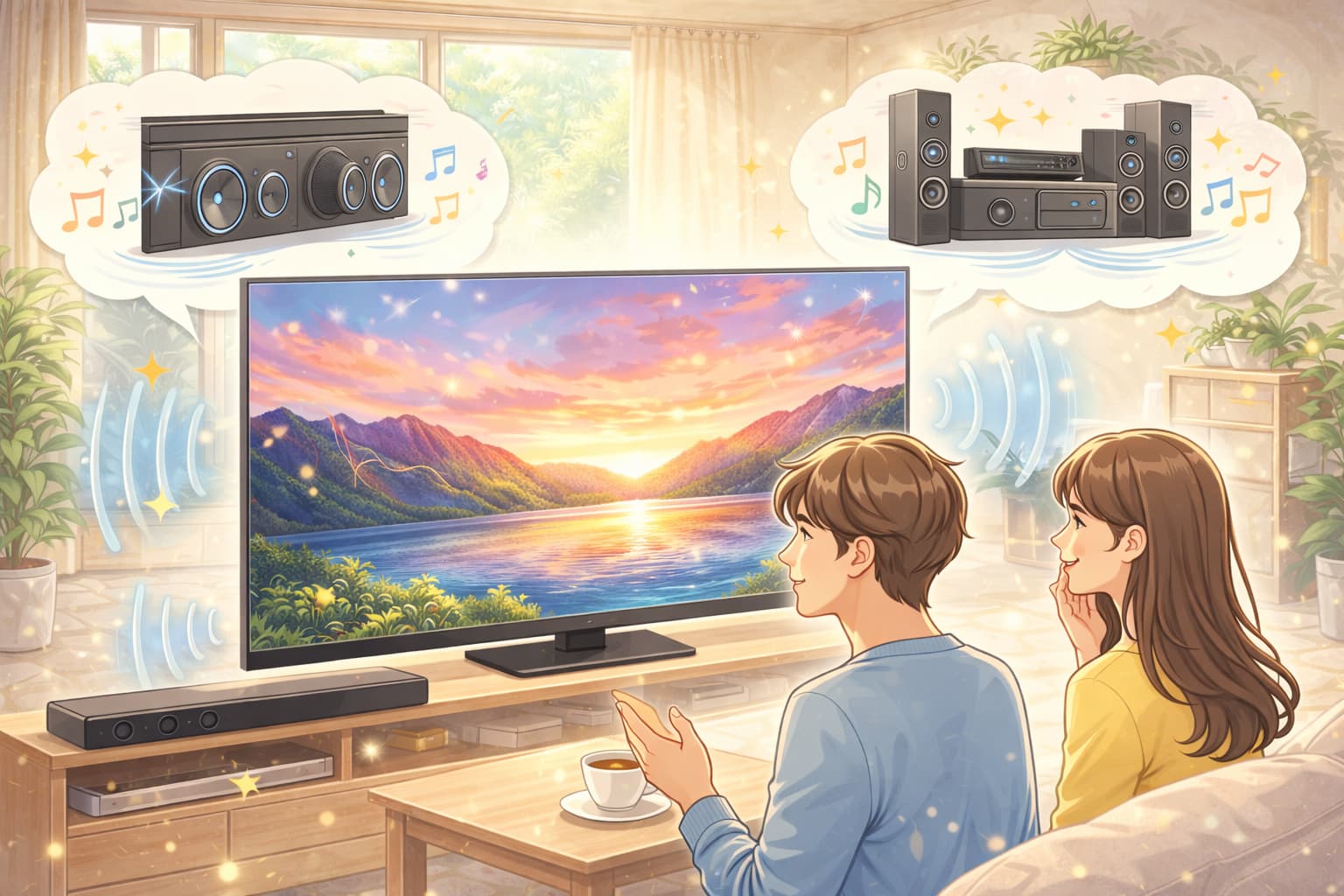 サウンドバーを足す予定があるか、視聴距離に対して何インチが現実的か、といった“実際の暮らし”から逆算すると選びやすくなります。