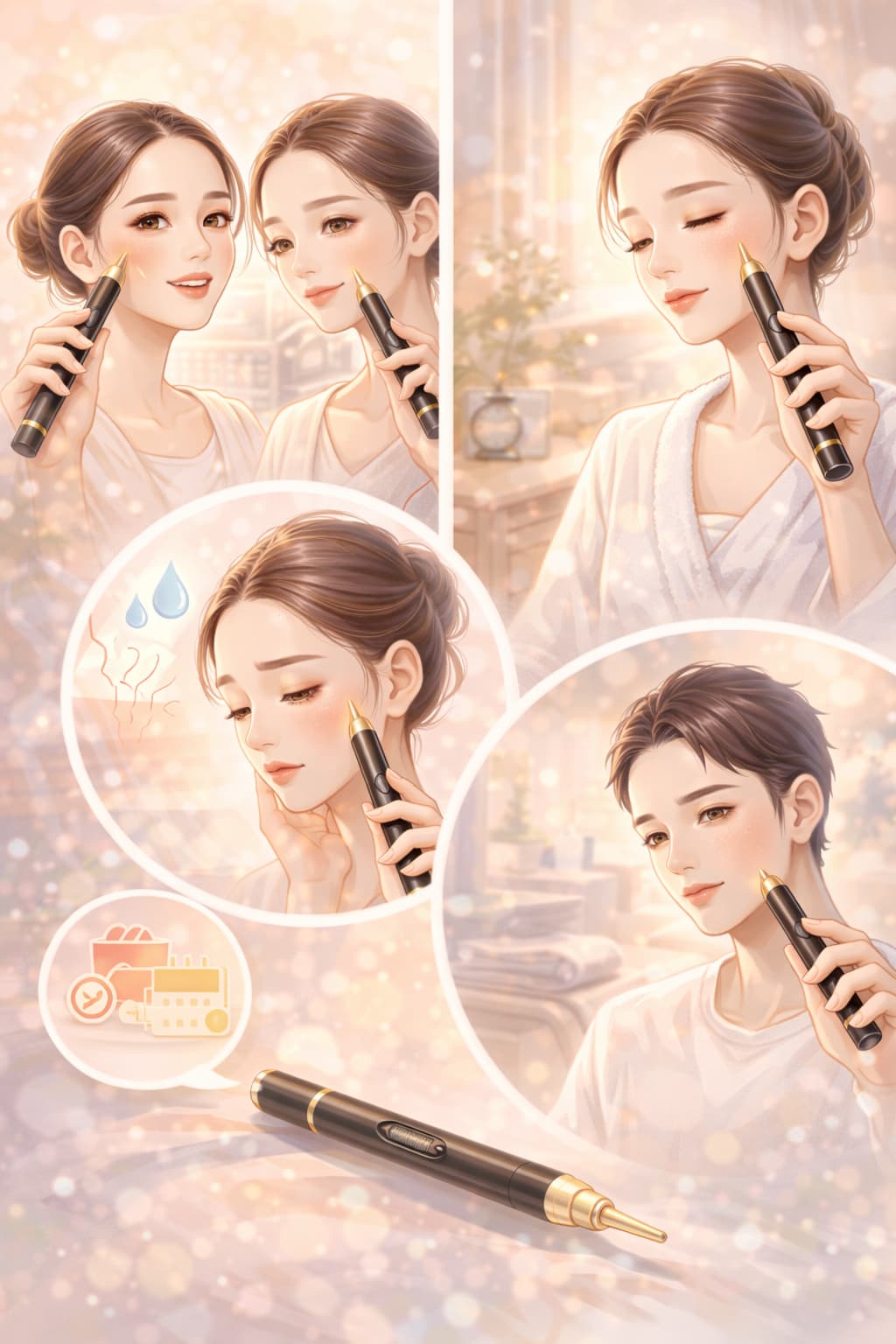 ペン型・スティック型の形状で、顔や首などの狙った部位に当てやすく、力加減を自分で調整できる点が特徴です。