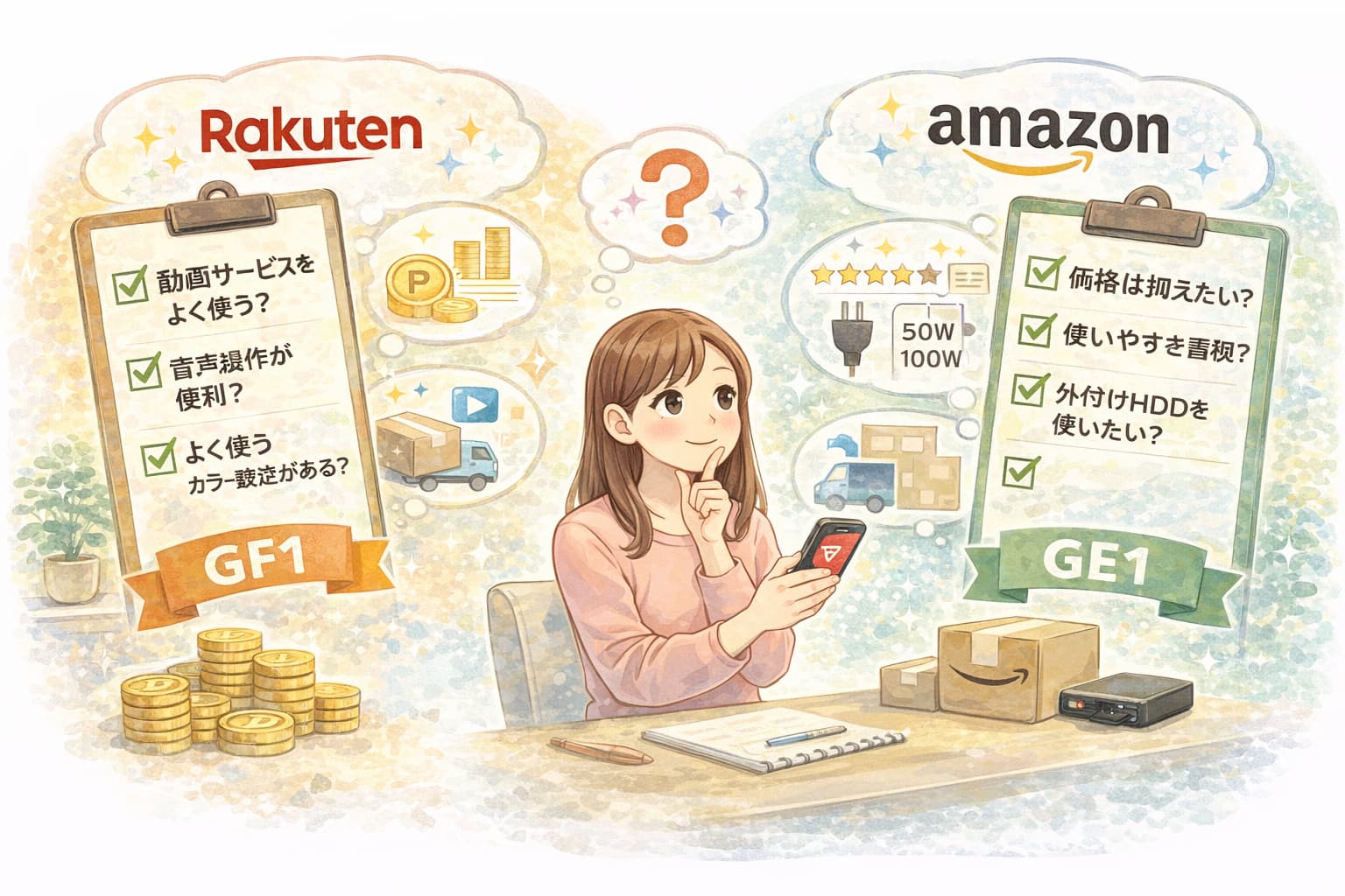 Fire TVなどをすでに持っている場合や、操作をできるだけシンプルにしたい場合も、GE1の方が後悔しにくい選択です。