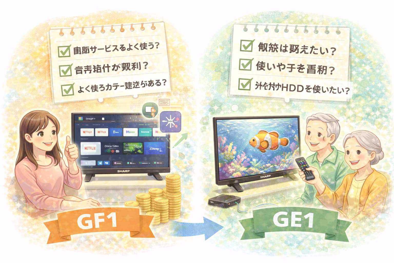 【比較】シャープAQUOS 2T-C24GF1/2T-C24GE1の違いまとめ|失敗しない選び方