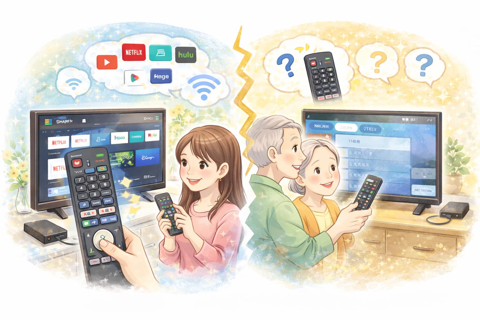 寝室や子ども部屋、リビングのサブテレビとして使う場合は、「誰が使うか」「どんな操作をするか」が重要です。