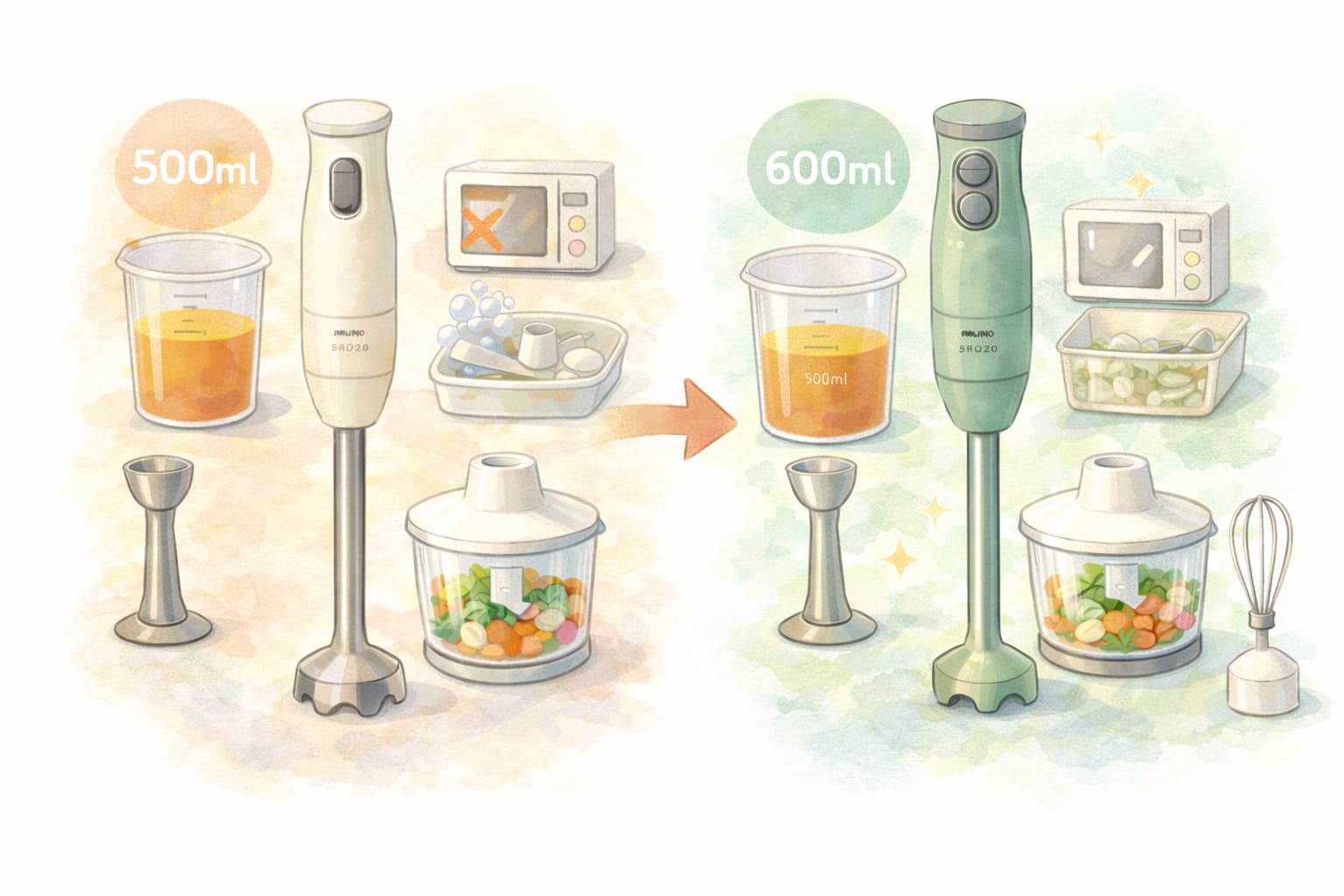 また、ブレンダーカップやチョッパーボトルが電子レンジ対応となり、