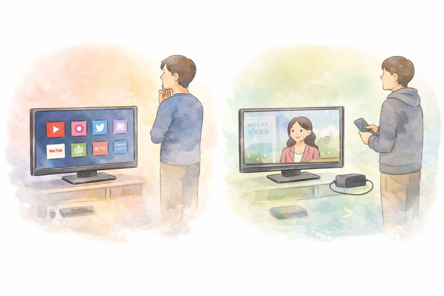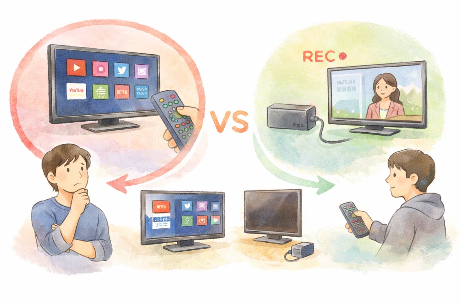 どちらが良いかは「テレビだけで完結させたいか」「外部機器を増やす運用に抵抗がないか」で決まります。