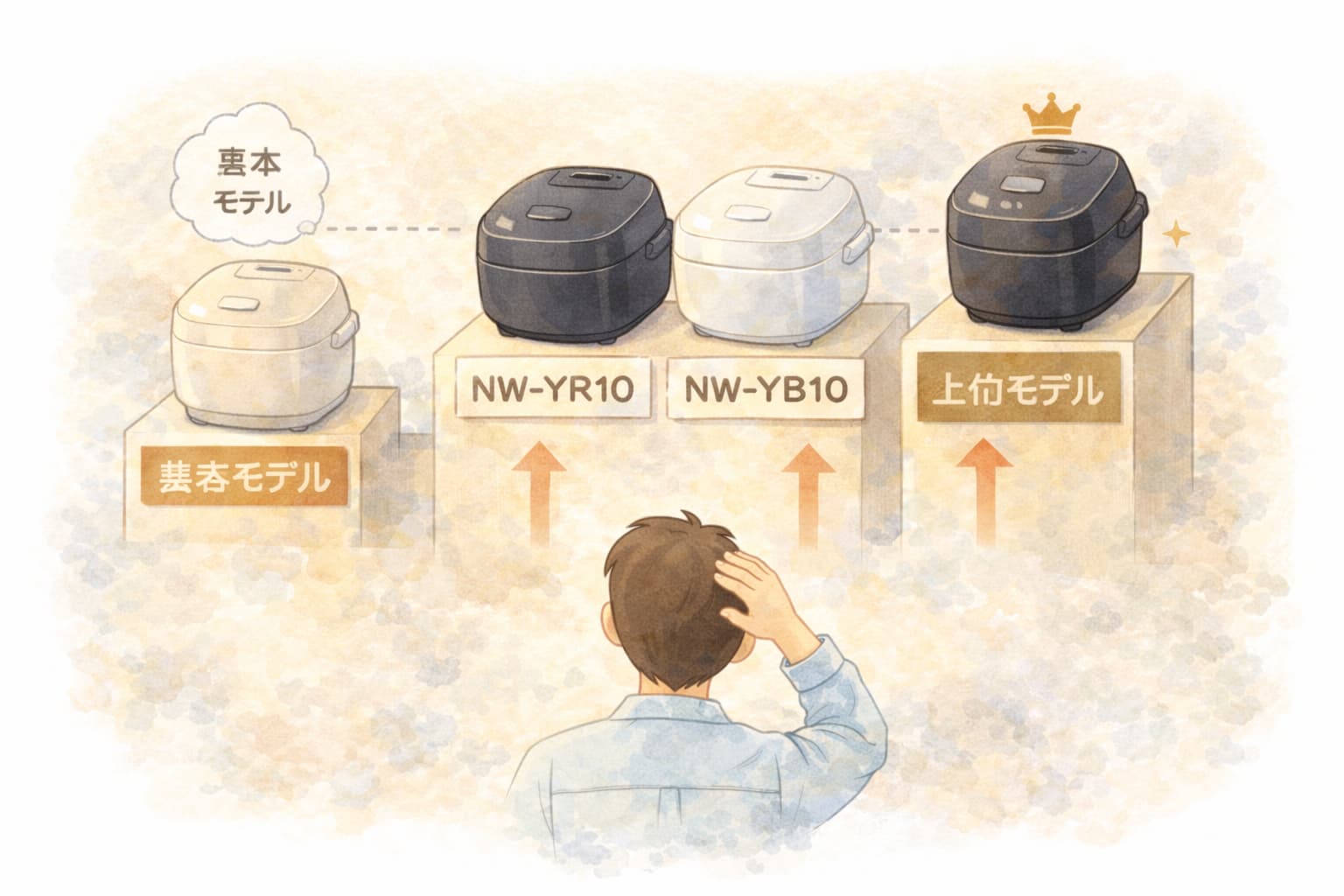 下位モデルと比べた場合、NW-YR10/NW-YB10は加熱方式や炊き上がりの安定感に明確な違いがあります。