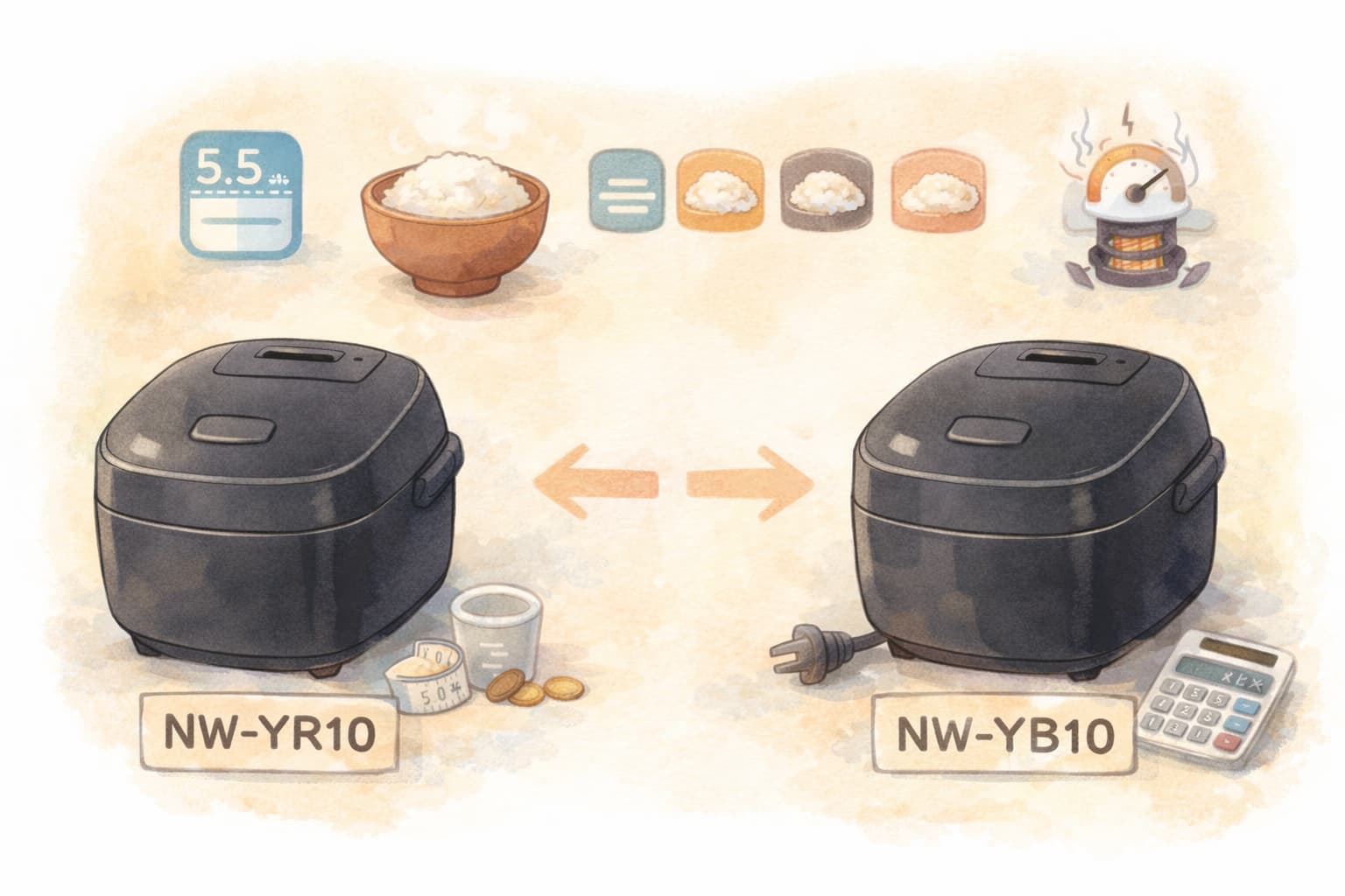 炊き上がりの味や加熱方式、炊き分け機能といった炊飯器として最も重要な基本性能については、NW-YR10とNW-YB10に大きな差はありません