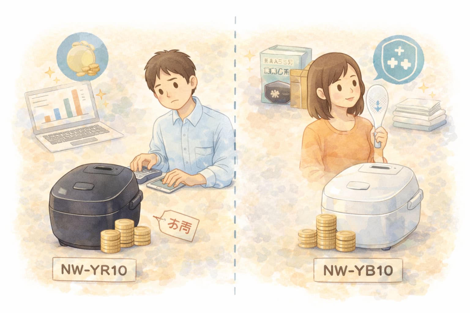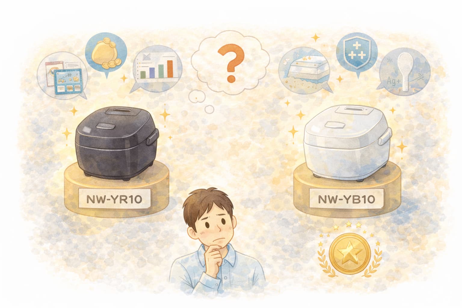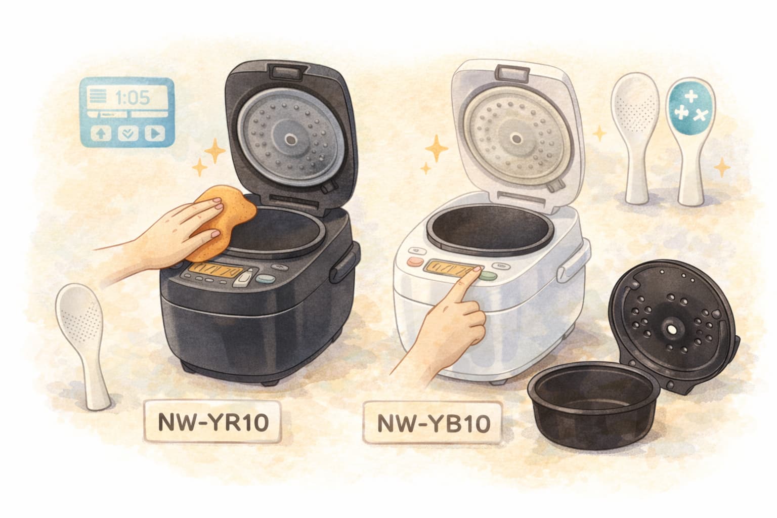 NW-YR10とNW-YB10は、炊飯性能そのものに大きな差はなく、選ぶ基準は価格・付属仕様・購入条件に集約されます。