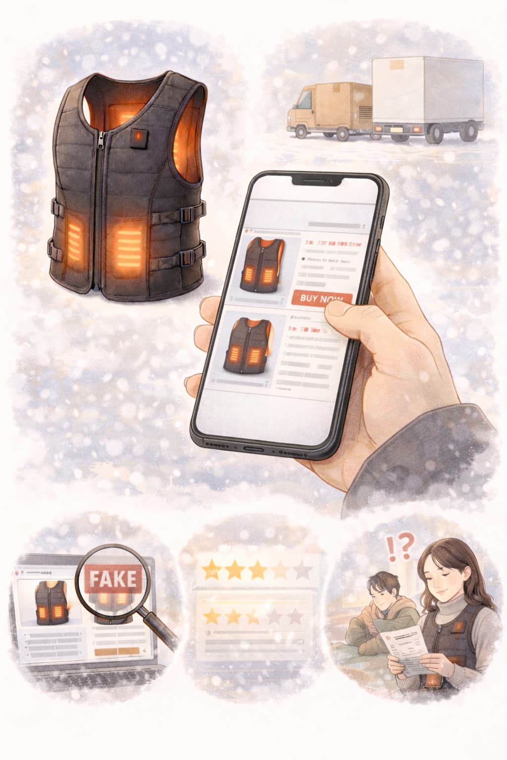 電熱ベストは見た目が似ている商品も多く、型番違いや類似品が混在しやすいジャンルです。