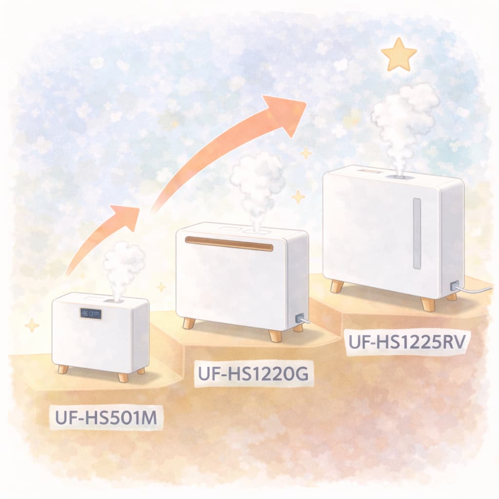 UF-HS1225RVは、価格の安さで選ぶ加湿器ではなく、「加湿力と快適性」を重視して選ぶモデルです。