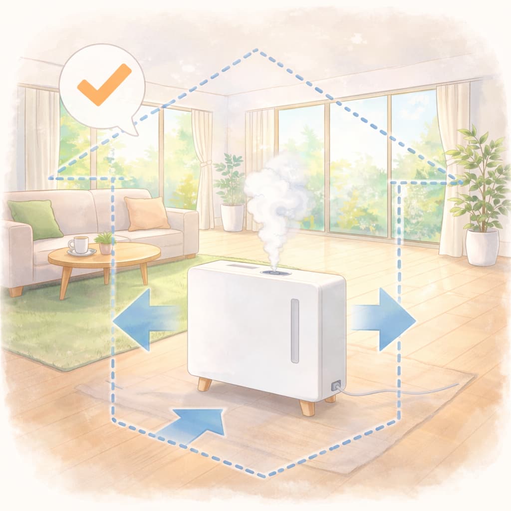 そのため、リビングで使うと「思ったほど湿度が上がらない」と感じることも少なくありません。