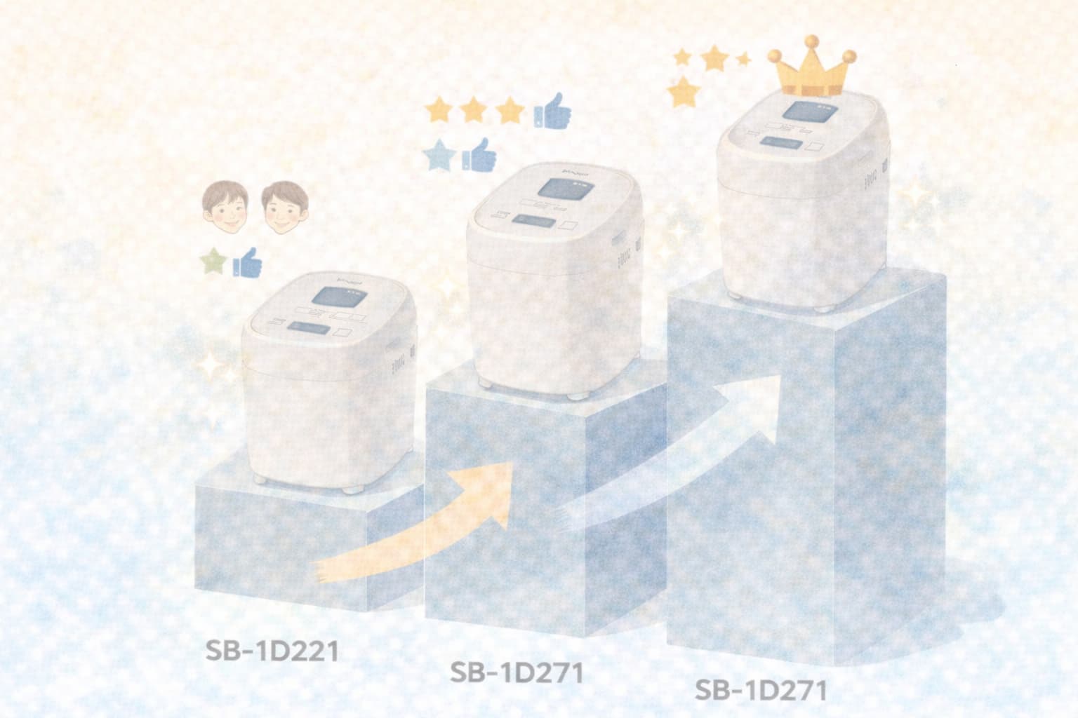 一方で、日常的なパン作りが目的であれば、SB-2D271やSB-1D271の範囲で十分満足できるケースが多く、価格と機能のバランスも取りやすい選択といえます。