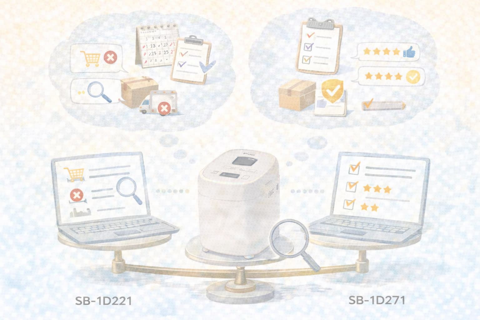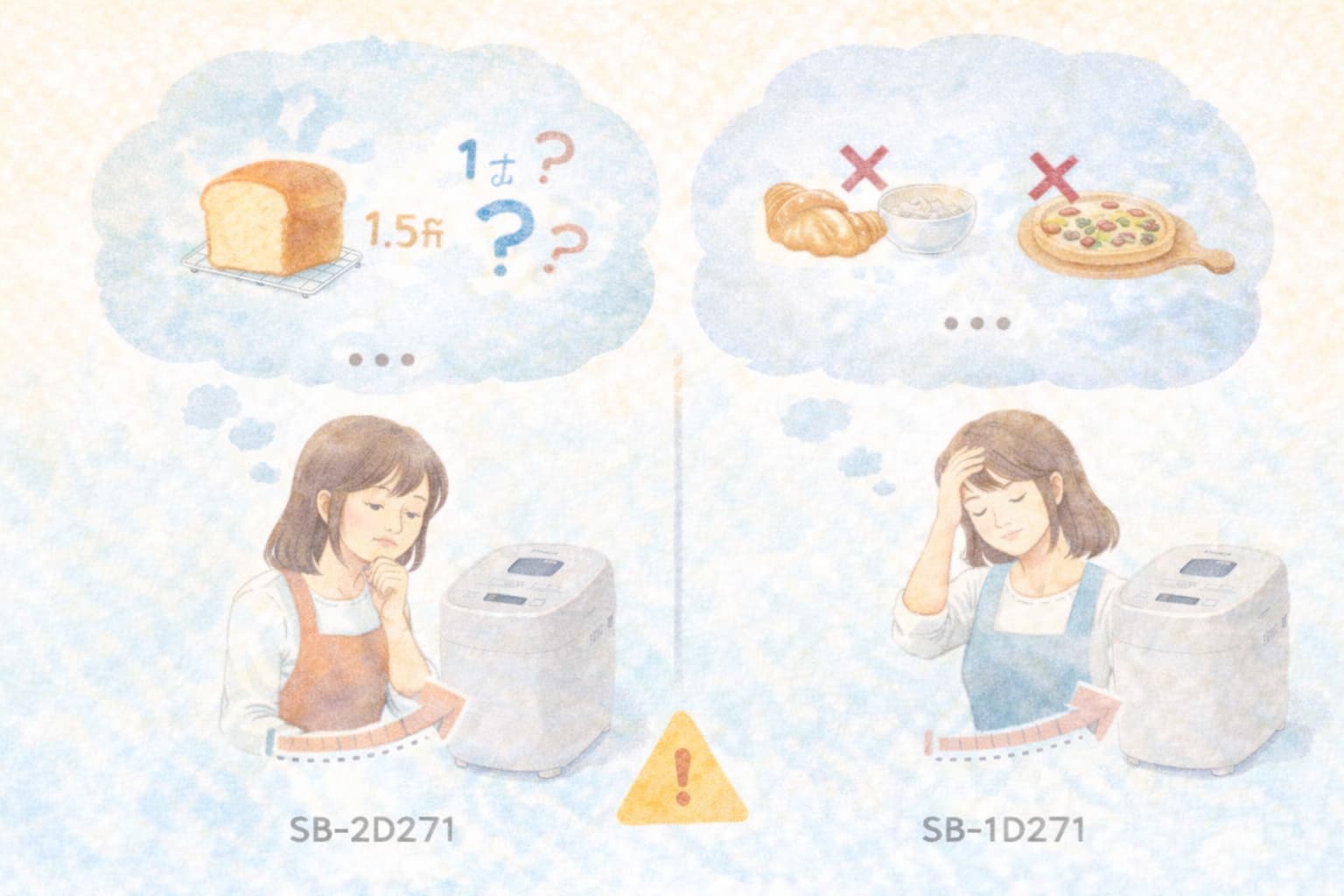 SB-2D271は、1.5斤まで焼ける点や、対応メニューが多い点を考えると、使いこなせる人にとっては価格差に納得しやすいモデルです。