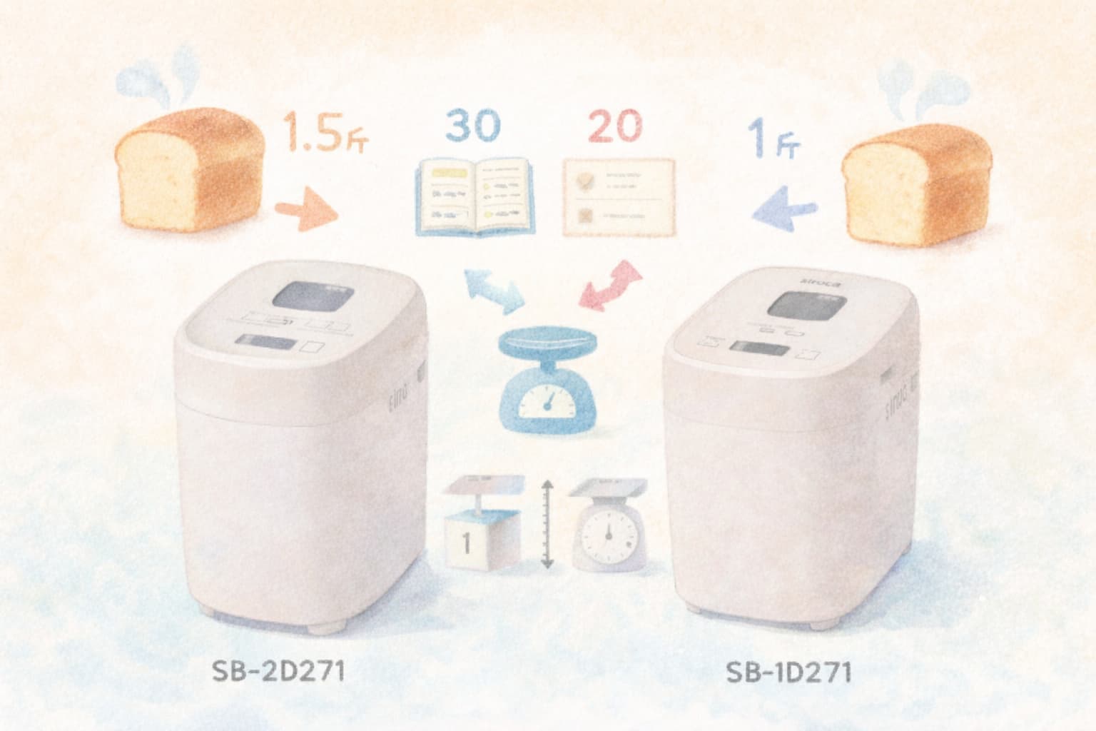 SB-2D271とSB-1D271は、同じシロカのホームベーカリーシリーズですが、基本スペックにはいくつか明確な違いがあります。