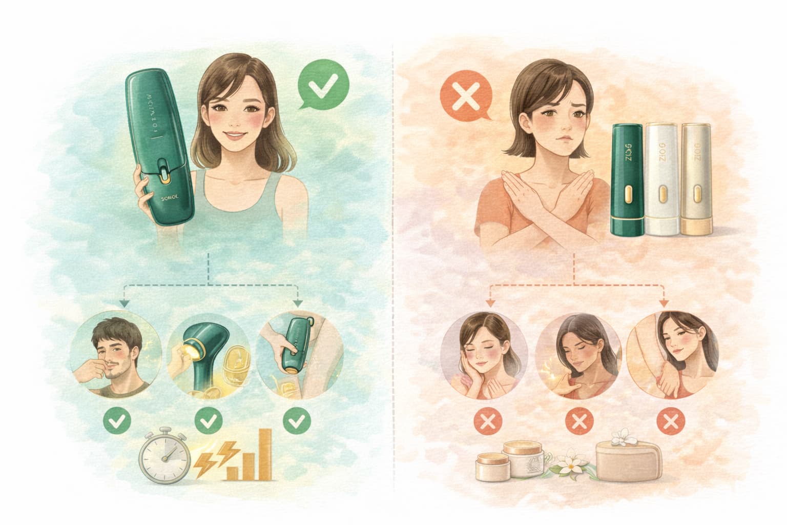 一方で、Dora Scrollを使う場合も、低出力設定と冷却機能を活かせば、敏感肌でも無理なく使えるケースがあります。