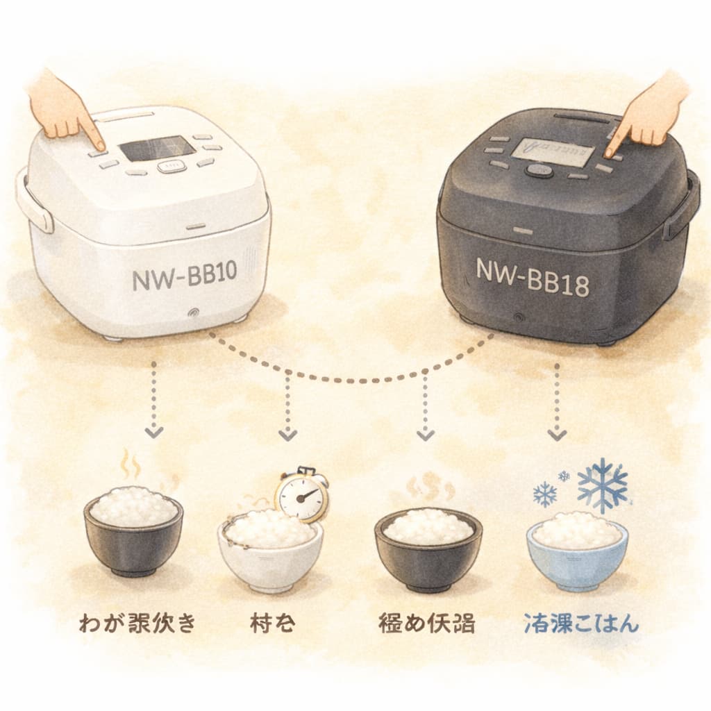 NW-BB10とNW-BB18は性能差で迷うモデルではなく、生活スタイルとの相性で選ぶ炊飯器です。