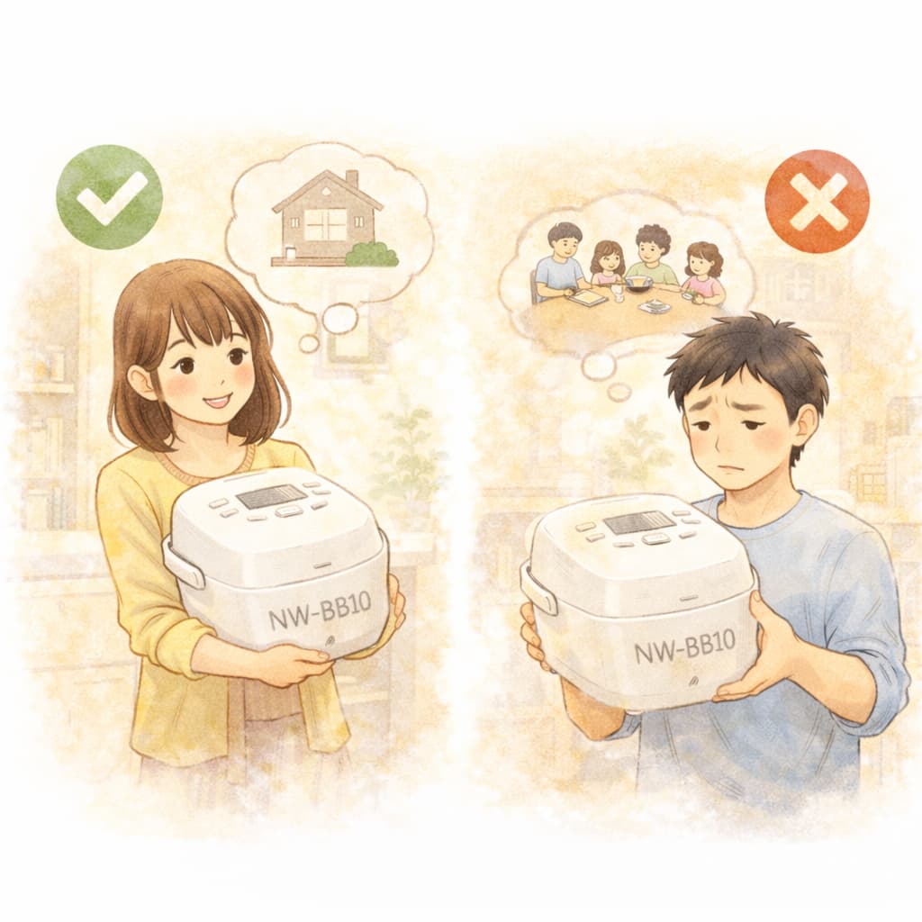 ここでは、5.5合炊きモデルであるNW-BB10が、どのような生活スタイル・家庭環境に向いているのかを具体的に整理します。