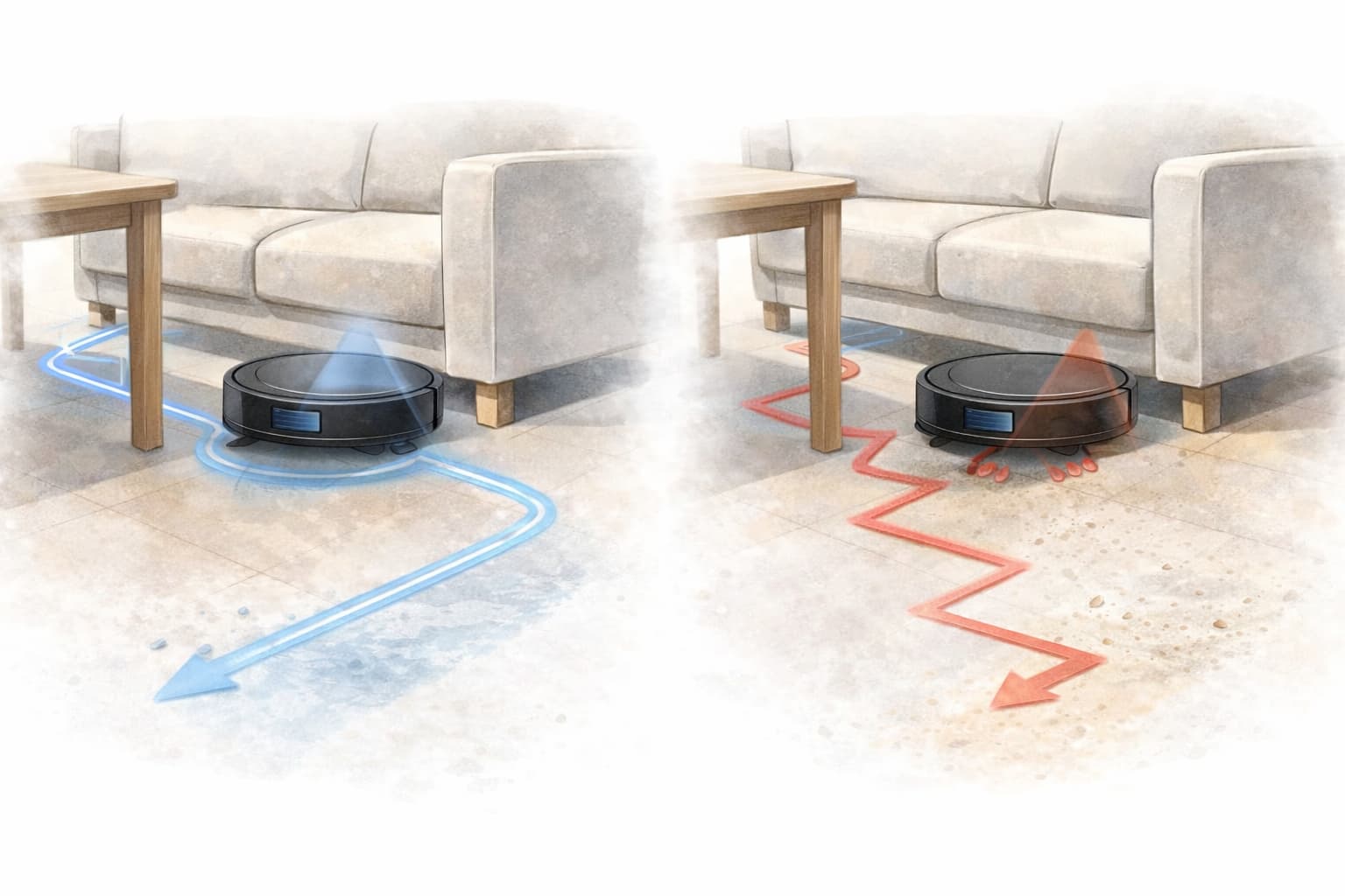 低いソファやベッド下を掃除したい場合、センサー構造や本体設計の違いが影響します。