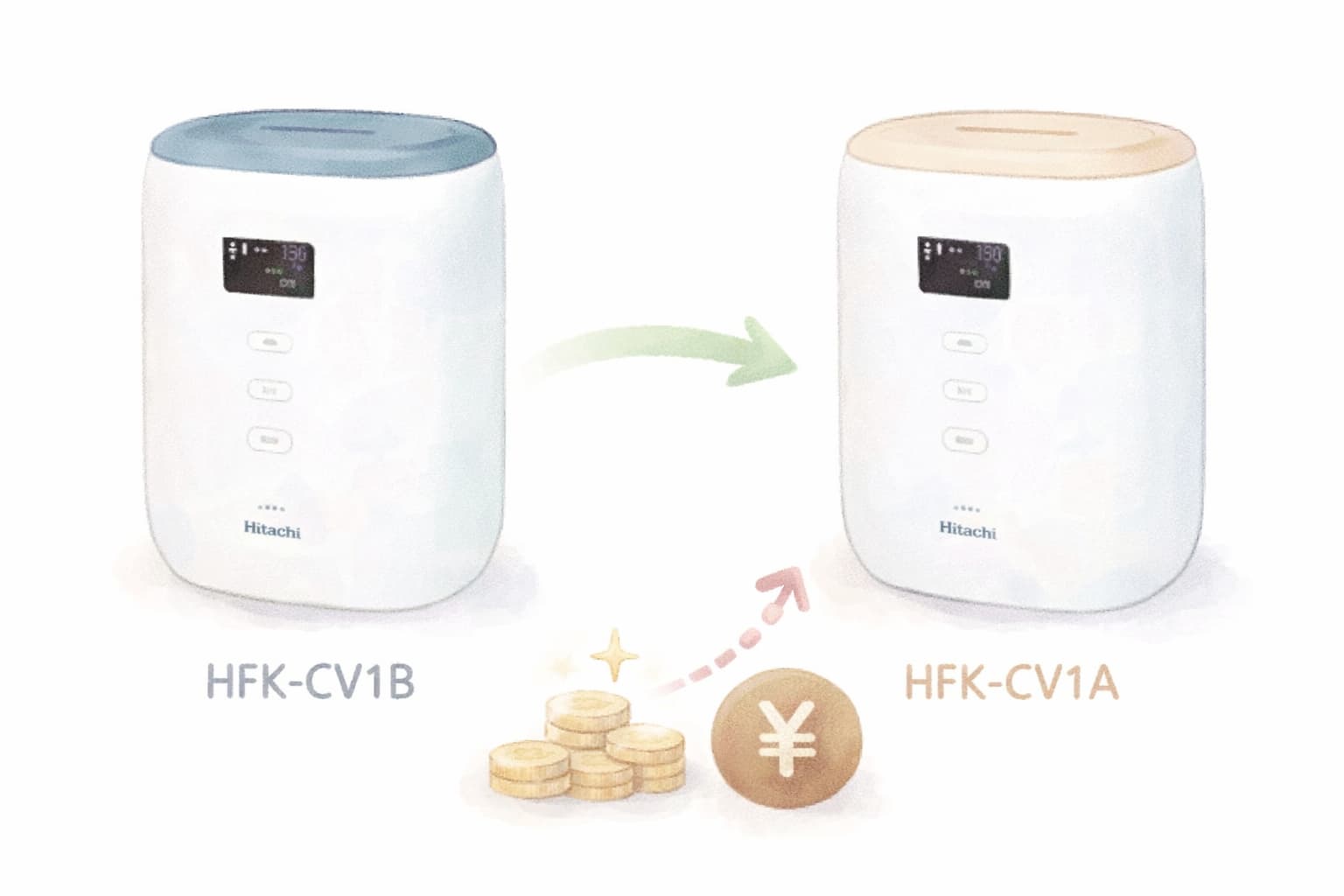 日立ふとん乾燥機HFK-CV1BとHFK-CV1Aの違いは?スペック・価格・選び方を比較