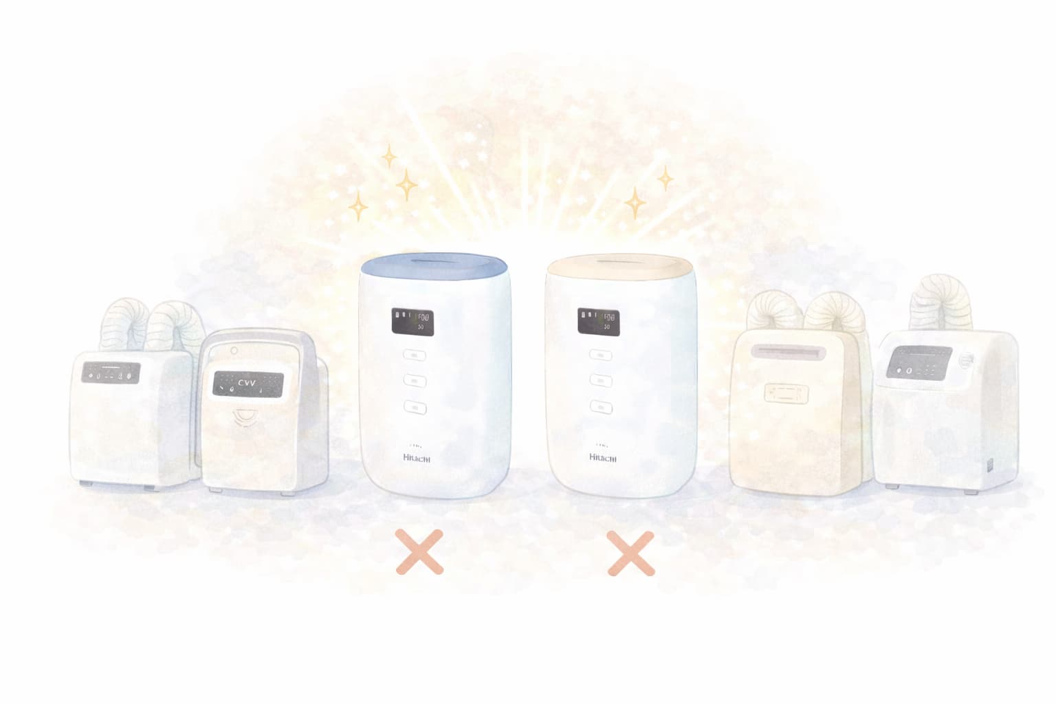 価格帯・設置性・運用の手軽さという3つの軸で見ると、日立は“必要十分をコンパクトにまとめたバランス型”という位置づけです。