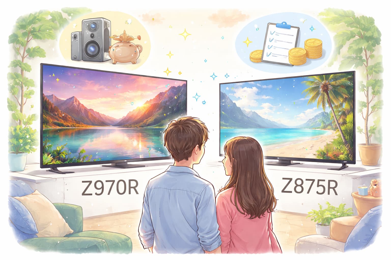 この記事では、スペックの羅列に終わらせず、視聴シーン(映画・スポーツ・ネット動画・ゲーム)や設置条件(サイズ、部屋の明るさ、音のこだわり)に落とし込みながら、Z970RとZ875Rの差をわかりやすく整理します。