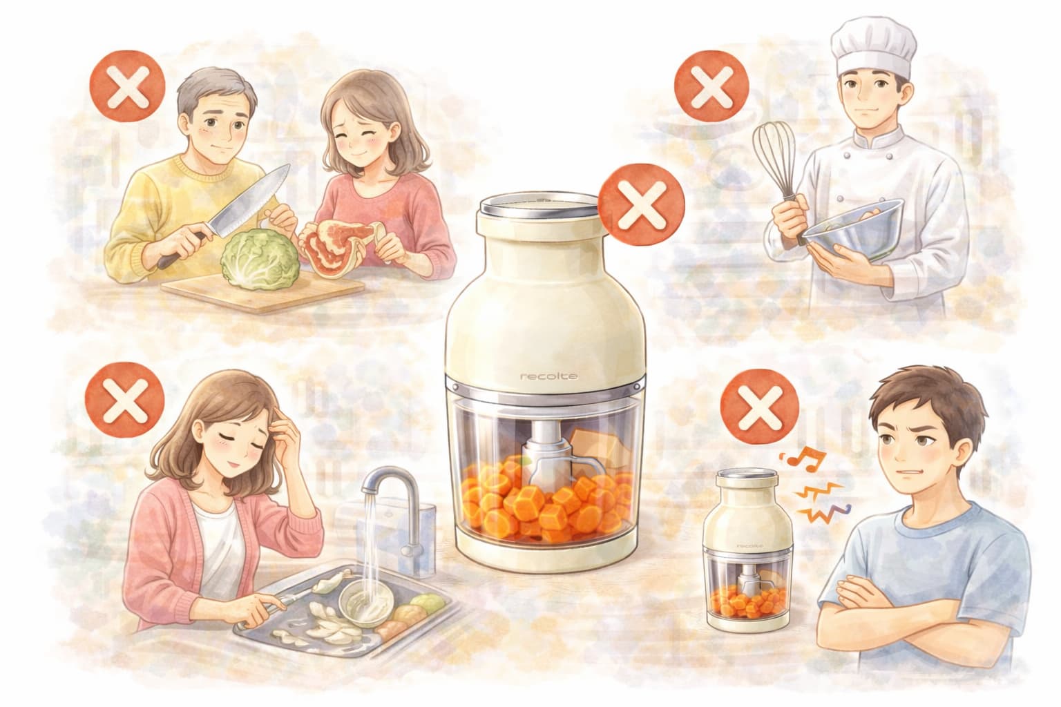 特にフードプロセッサーはサイズや用途によって向き不向きが分かれるため、自分の調理スタイルに合うかどうかを確認しておくことが大切です。