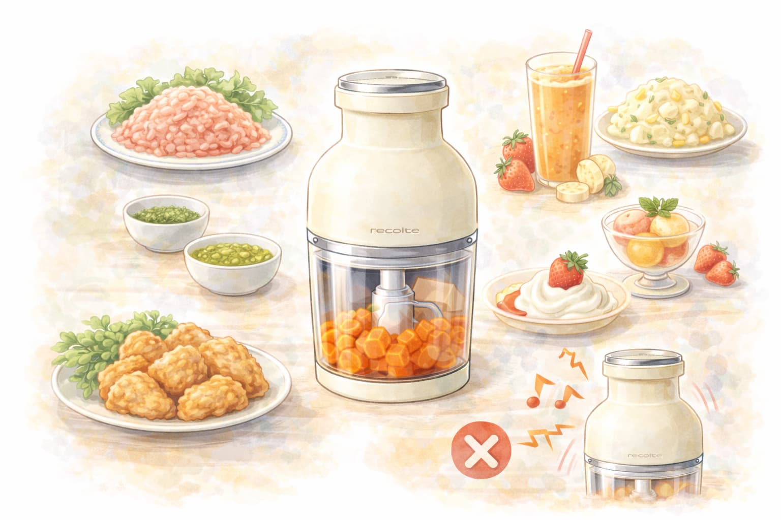 料理の下ごしらえを効率化することを目的として設計されており、刻む、混ぜる、砕くといった基本的な作業を短時間で行えるようになっています。
