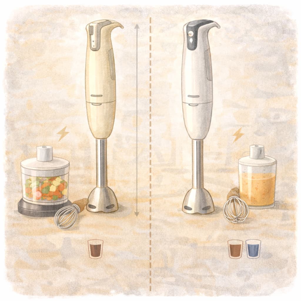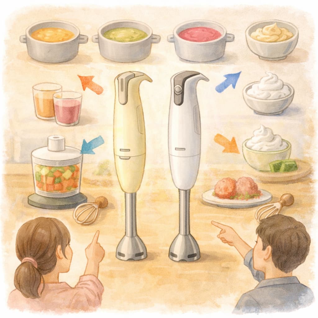 最初に結論を押さえると、両者は「ハンドブレンダーとしてできること」は似ていますが、選ぶ決め手は使い方の癖とキッチン導線にあります。