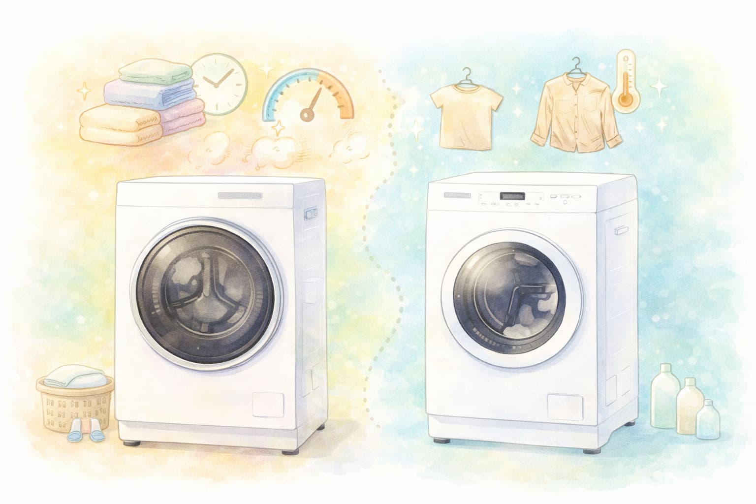 乾燥まで毎回まとめて終わらせたいなら乾燥容量と時短の出やすい設計が有利になり、乾燥は必要なときだけで衣類の負担を抑えたいなら低温乾燥の考え方が合いやすいです。