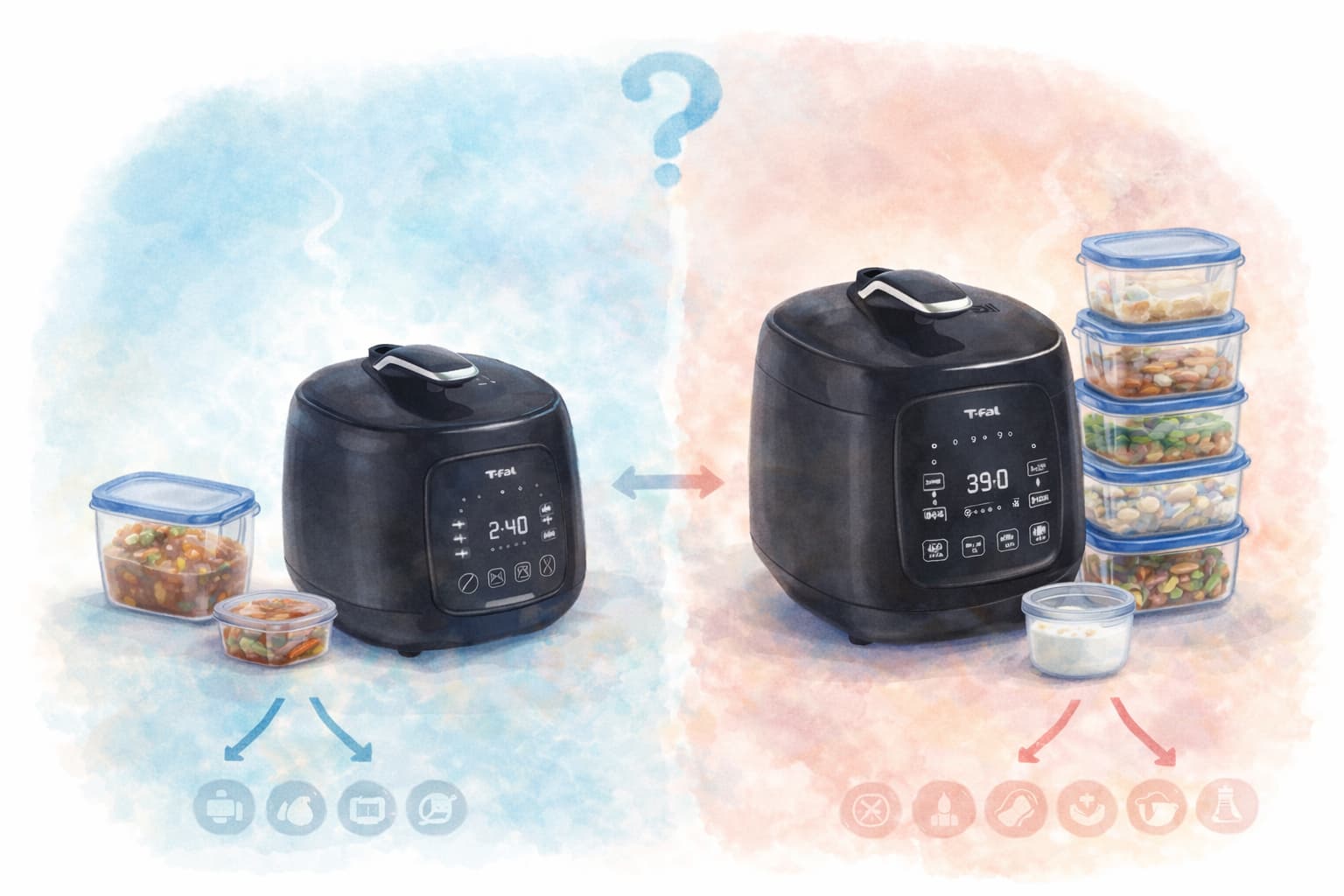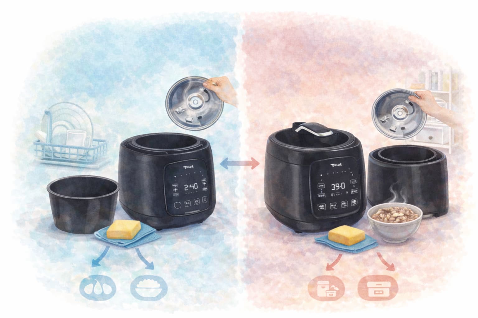 ティファール ラクラ・クッカー ミニとコンパクトは、どちらも魅力のある電気圧力鍋ですが、向いている人ははっきり分かれます。