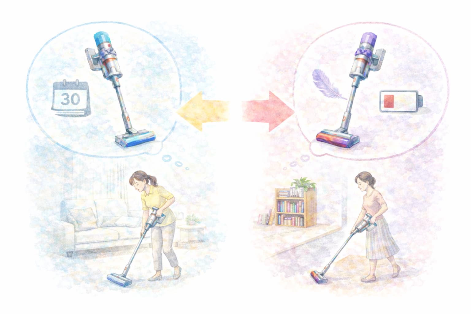 自分が掃除機に求めるものが、しっかり感なのか、軽快さなのかを先に整理しておくと、型番だけで迷い続ける状態から抜け出しやすくなります。