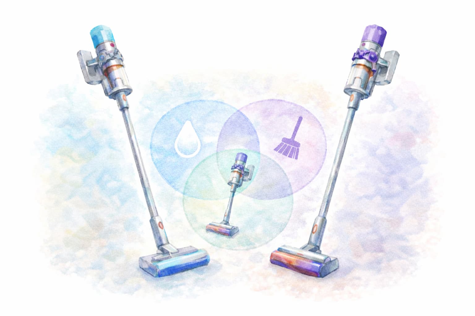 ダイソンの水拭き対応コードレス掃除機を比較するとき、最初に押さえておきたいのは、SV49 SUとSV52 SUは似ているようで目指している使い心地が少し違うという点です。