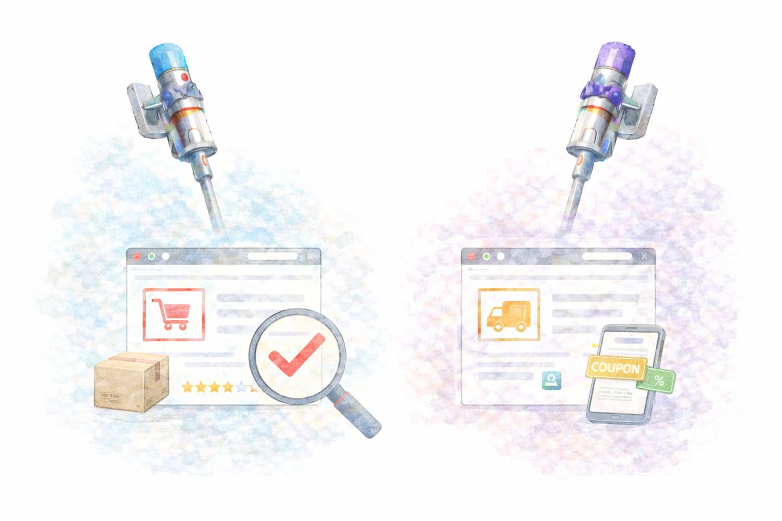 通販サイトでは、つい価格の安さだけで比較したくなりますが、掃除機のような家電は付属品や保証内容まで含めて見ないと本当の比較になりません。