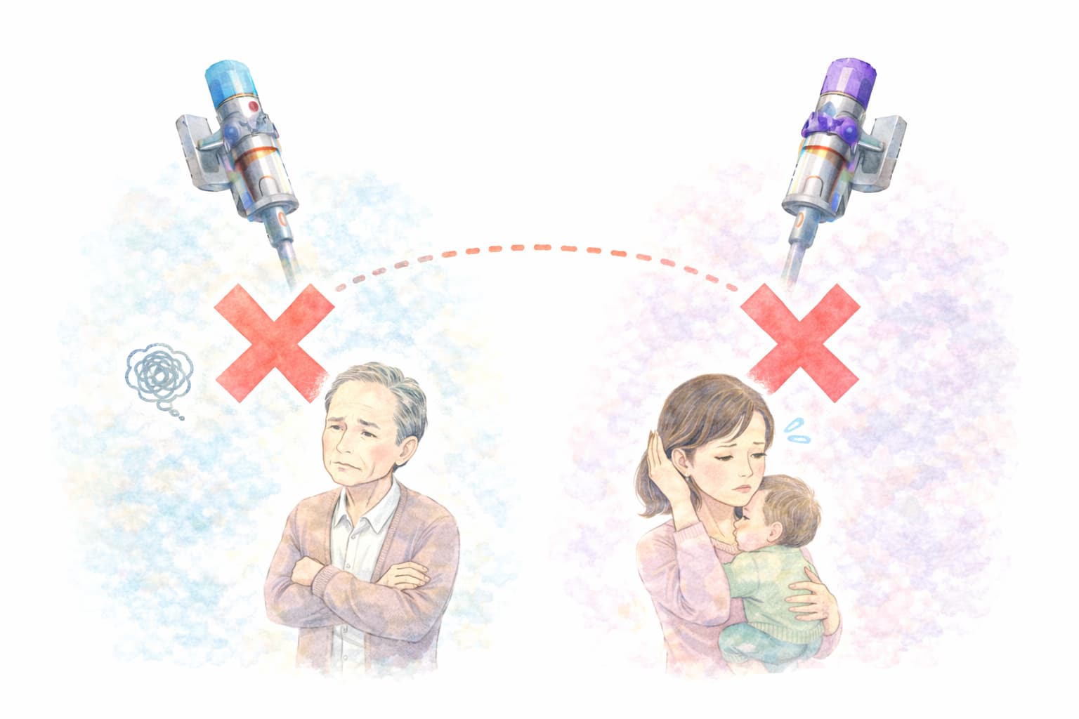 たとえば、朝の限られた時間にさっと床をきれいにしたい人、階段や狭い場所など持ち上げながら掃除する機会が多い人、家電に強いパワー感よりも毎日無理なく使えることを重視したい人に向いています。